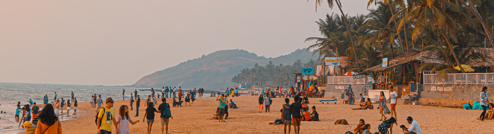 • Calangute beach – Calangute is a town in North Goa, famous for its beach. The beach is the largest in North Goa and visited by thousands of domestic and international tourists alike. The peak tourist season is during Christmas and New Year, and during the summer in May. During the monsoon season, from June through September, the sea can be rough and swimming is prohibited. The beach offers water sport activities like parasailing and water skiing, among others.